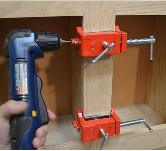 The Bessey cabinetry clap is designed to combine the multiple steps of face frame cabinet installation into one easy process. It works on stiles 1-1/2" to 2" and up to 1-1/2" thick (each). Face frame stiles can be tightened, aligned, pre-drilled and fastened while the clamp is in place. The clamp holds the individual cabinet edges together while also keeping the faces along the joint flush. There is an integrated pilot-hole drilling guide on one end. The guide flips out of the way so you can drive screws to connect the cabinets without removing or repositioning the clamp. Professional quality installation is achieved at a fraction of the time compared to the use of more conventional clamps.