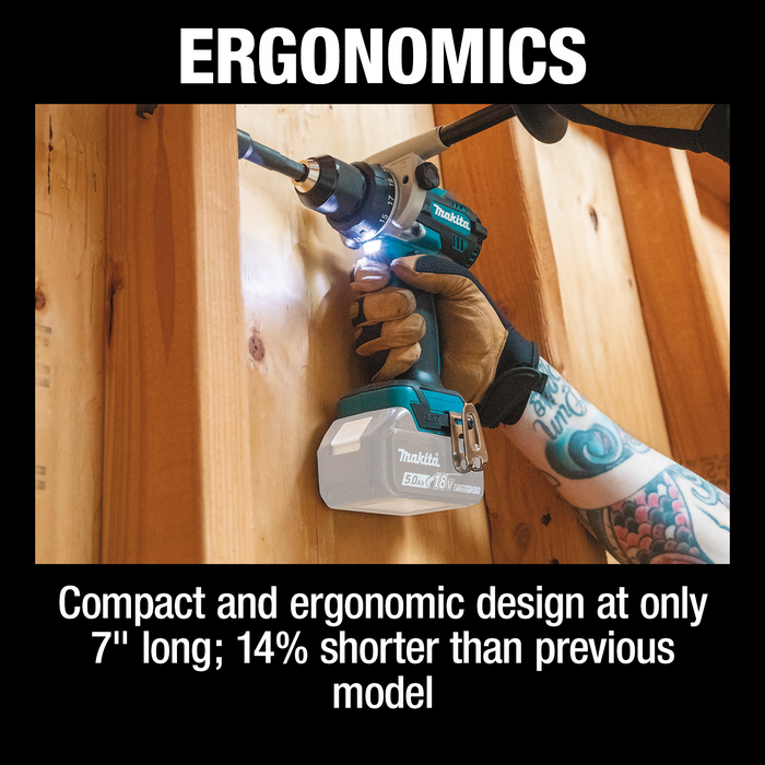 The XPH14Z has a more compact and ergonomic design, 14% shorter than the previous model. It's powered by a Makita brushless motor for longer run time, increased power and speed, and longer tool life. With a 2-speed transmission (0-550 & 0-2,100 RPM), the XPH14Z can tackle a wide range of drilling, fastening and hammer drilling applications. Other features include an all-metal 1/2" self-ratcheting chuck for improved bit-gripping strength, L.E.D. lights, and a rubberized soft grip for increased comfort.