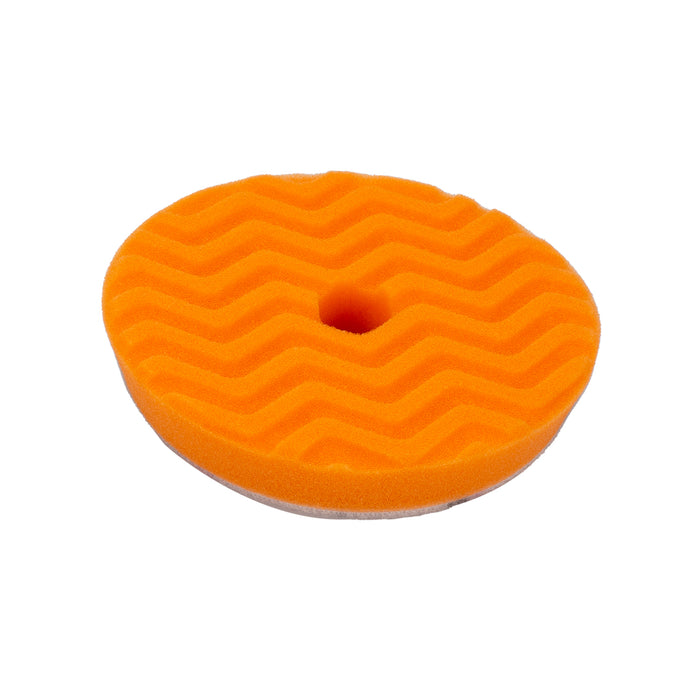 This unique orange color all-in-one, one-step car paint correction pad is for cutting and polishing processes, a perfectly balanced foam pad for single-step corrections, working with DA and Rotary Polishers with Hook and Loop.