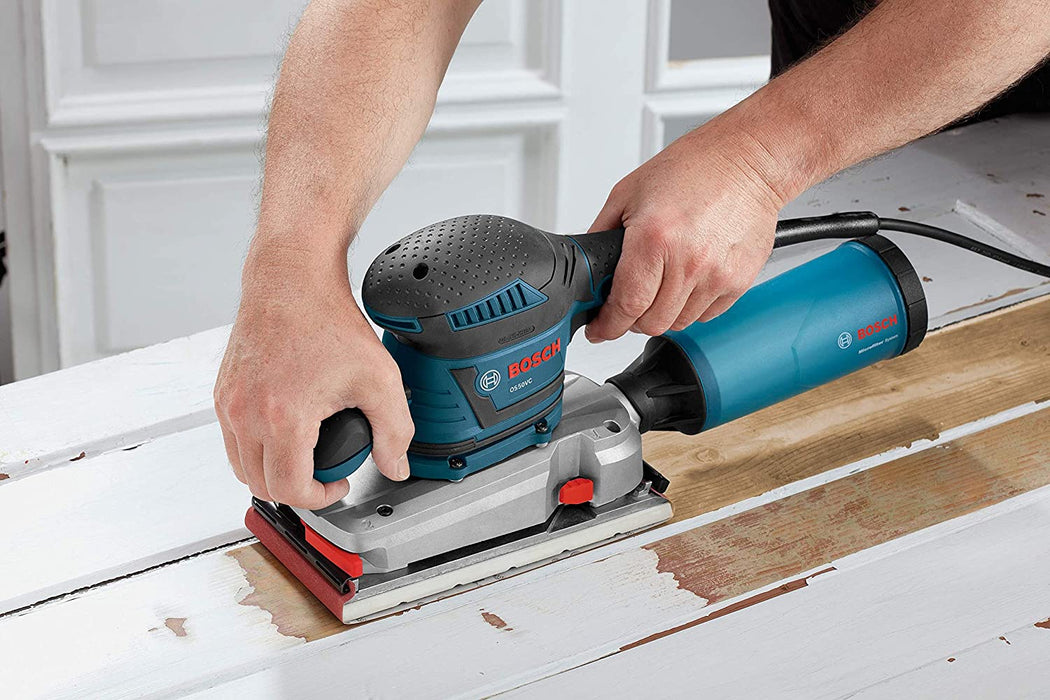 - Flush sanding ability sands close to vertical surfaces on three sides.