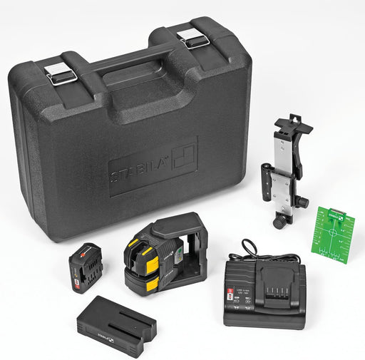 Self-Leveling Green Beam Cross Line LaserThe Stabila LAX300G Cross Line Laser Level with green vertical and horizontal lines plus plumb points are ...