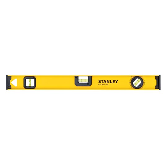 The 24" Stanley I-Beam 180 level features a unique 180° rotating vial to accurately measure any angle. Made from heavy-duty aluminum, the I-Beam 180 provides rigidity and accuracy that lasts. Added top read window for easy readability and reference measurements printed directly on the level make this tool ideal for working in any situation.