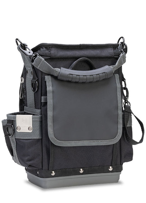 The TP-LC is a one-sided, closable large service technician tool pouch that can store meters, small hand tools, fasteners and wire nuts, etc. The TP-LC is great for technicians needing a compact tool storage bag for keeping a variety of service-oriented tools out of the weather and protected. Features include an injection molded base, rugged construction, "Hang-up" hook, heavy duty zippers, and over-sized over-molded carrying handle.