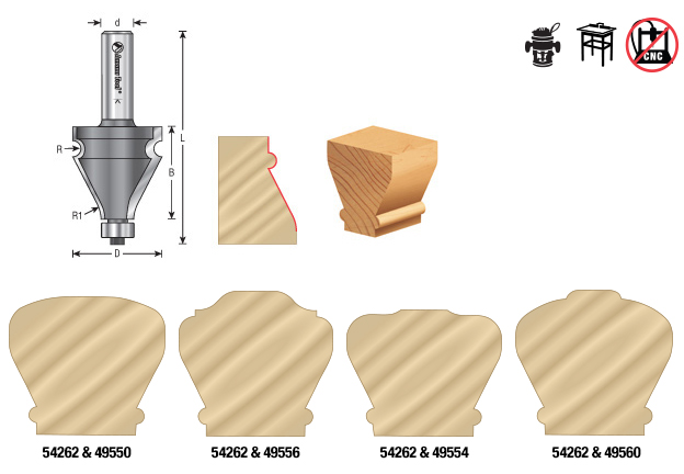 Shape the sides of a handrail to make it both attractive and easy to grip. (Then ease the top edges with table edge bits.) Use in a handheld or table-mounted router.