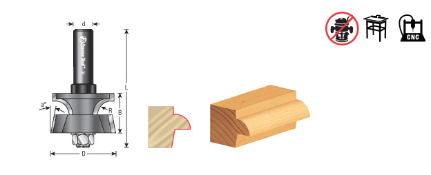 Door Making Router Bits: Finger Grip & Door Lip Router Bits, Carbide Tipped: 3/8" Rad x 10° x 1-9/16" Dia x 1" x 1/2" Shank