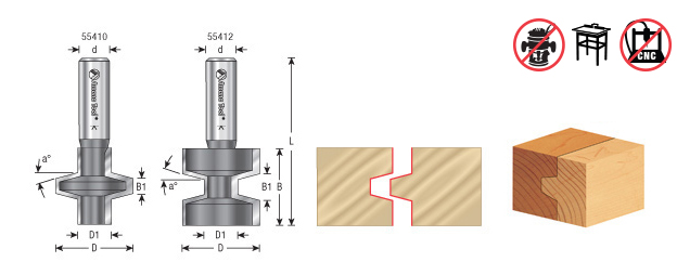 The tongue-and-groove joint cut by this two-bit set can be used for applications as diverse as assembling broad tabletops and other panels and making strip flooring. Use it on stock from 5/8" through 1-1/4" thick.