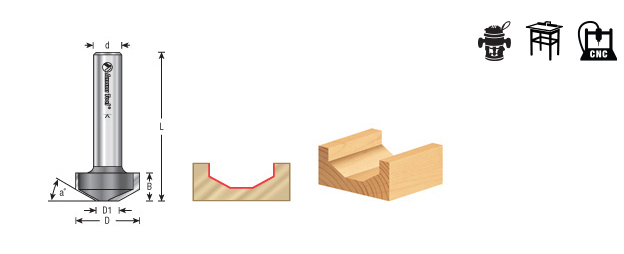 Grooving Router Bits: Raised Panel Groove Router Bits, Carbide Tipped: 30° x 1-1/8" Dia x 1/2" x 1/2" Shank
