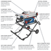 • On-tool storage stores the rip fence, miter gauge, Smart Guard System, hex wrench, blade wrench and push stick on the tool