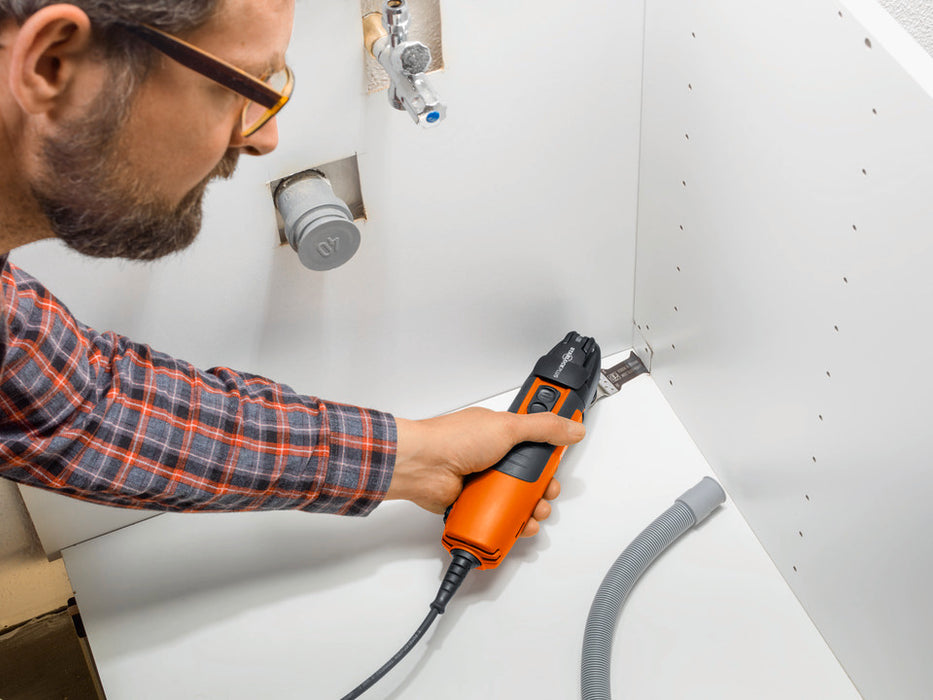 The entry-level cordless MultiTool for interior construction and renovation in the variant without a battery and charger with a bi-metal saw blade for wood, metal, and plastics.