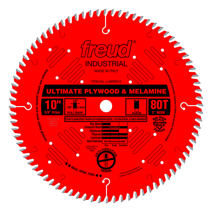 Use for crisp, splinter-free and chip-free cuts in hard and soft woods. Flawless finish in veneered plywood, melamines & laminates. Perma-Shield coating guarantees less working friction and less resin adhesion while preventing the development of rust.