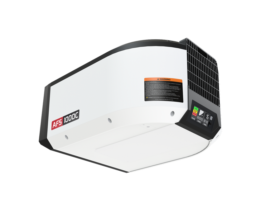 Improved design and added technology make the AFS1000C a must have in any shop.The AFS1000C detects dust levels and can adjust fan speed accordingly. The filter life is also monitored and displayed on the tilted LED display panel.ABS injection molded body makes the unit lighter and less prone to damage.Bright LED display shows filter life, speed, and timer settings.A Radio Frequency remote makes changing speed and setting the timer, up to 16 hours, from any where in the shop.