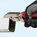 Added power and comfort is also achieved with RedLine Handle technology. The handle opening of the Gutter Downspout Crimper compliments the natural power stroke of any userÕs hand. It also maximizes the powerful 7:1 mechanical advantage of compound-leverage head to handle linkage. Every handle is made with non-slip grip inserts, comfortable Handle grip contours, spring handle actuation, and a thumb-operated handle latch. All of these qualities ensure a natural fit and feel for comfortable one handed operation.