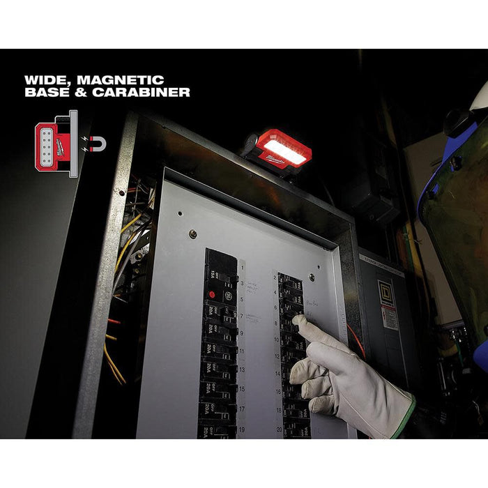 The REDLITHIUM USB ROVER Pivoting Flood Light offers best-in-class output in any direction and is powered by our REDLITHIUM USB. The compact LED floodlight offers 550 lumens of TRUEVIEW High Definition Output. The light head has 210¡ of rotation, allowing you to direct high output light to any work surface. A wide, magnetic base allows you to position the pivoting floodlight on common work surfaces or mount it to metal for hands-free task lighting. Its collapsible design fits into pockets and a built-in carabiner gives you the ability to clip it to tool organizers or straps for easy transport. The three different output modes allow you to optimize your light output and runtime for up to 13 hours of runtime. The REDLITHIUM USB ROVER Pivoting Flood Light Light is powered by the REDLITHIUM USB 3.0AH Battery, providing all-day run-time, more recharges, and 3x faster charge time. The Milwaukee REDLITHIUM USB Battery can be recharged in the flashlight via Micro USB or swapped out with additional REDLITHIUM USB Batteries for virtually no downtime. The MILWAUKEE REDLITHIUM USB ROVER Pivoting Flood Light is great for any trade professional and covered by a limited lifetime warranty.