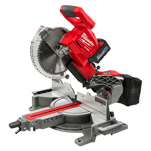 The M18 FUEL 10" Dual Bevel Sliding Compound Miter saw was designed to meet the demanding needs of professional carpenters and remodelers. Delivering greater capacity than many corded 10" sliding miter saws and the POWERSTATE Brushless motordelivering corded cutting performance. The 2734 provides users a solution to replace their corded miter saws. The M18 REDLITHIUM XC 8.0 Battery battery pack delivers up to 400 cuts per charge making the saw capable of lasting an entire day on site with only one pack. Premium features like an adjustable stainless steel detent plate, cam locking miter system, easy access bevel adjustment lever and both a detent override lock and chop lock lever located on the front of the tool. The M18 FUELª miter saw is designed for easy operation and repeatable, accurate cuts.