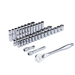 The 47-Piece SAE & Metric 1/2" Drive Ratchet and Socket Set offers better access in tight spaces and maximum tool strength. The 90-tooth ratchet tool offers 4¡of arc swing and a slim profile design, so you can work in tighter spaces. The MILWAUKEE socket set features an innovative wrench-compatible socket design with FOUR FLAT sides to help prevent rolling. The _Ó drive ratchet has sockets with sizes stamped into the flats for easy-to-read visibility. Our optimized socket geometry additionally helps reduce bolt rounding and stripping. The Milwaukee ratchet and socket set includes a removable inner tray designed to be stored long-term in a steel storage chest and a durable carrying case for ultimate portability. The set's accessories guarantee you have what you need to tackle every job, both in the garage and on the jobsite. The 47 Piece SAE & Metric _Ó Drive Ratchet and Socket Set is backed by a lifetime guarantee.
