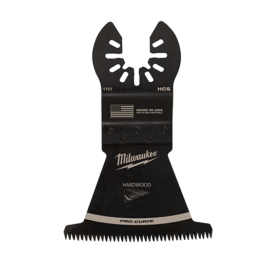 The Universal Fit OPEN-LOK HCS Japanese Tooth PRO-CURVE Hardwood Blades for Oscillating Multi-Tools are made from premium high carbon steel. This hardwood multi-tool blade has precision triple ground Japanese teeth and a includes PRO-CURVE tooth edge, giving you greater control and accuracy in plunge cuts. This is Milwaukee's best multi-tool blade for making precise cuts with a smooth finish in hardwood and can also be used in other woods, PVC, drywall, and other soft materials. This MILWAUKEE blade delivers up to 2X faster cuts than the previous generation of high carbon steel blades. This multi-tool blade is designed and made in the USA with global materials.
