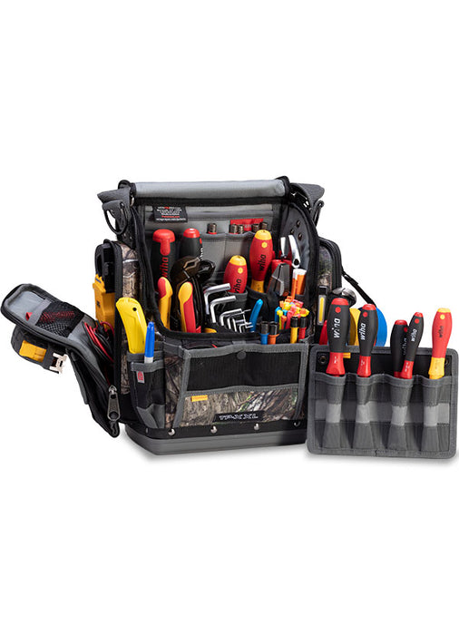 The TP-XXL is a closable mid-sized tool pouch designed with integral side mounted padded meter pockets. The TP-XXL can be customized to hold a variety of tools, meters, fasteners, small tablet computer, and various other gear.
